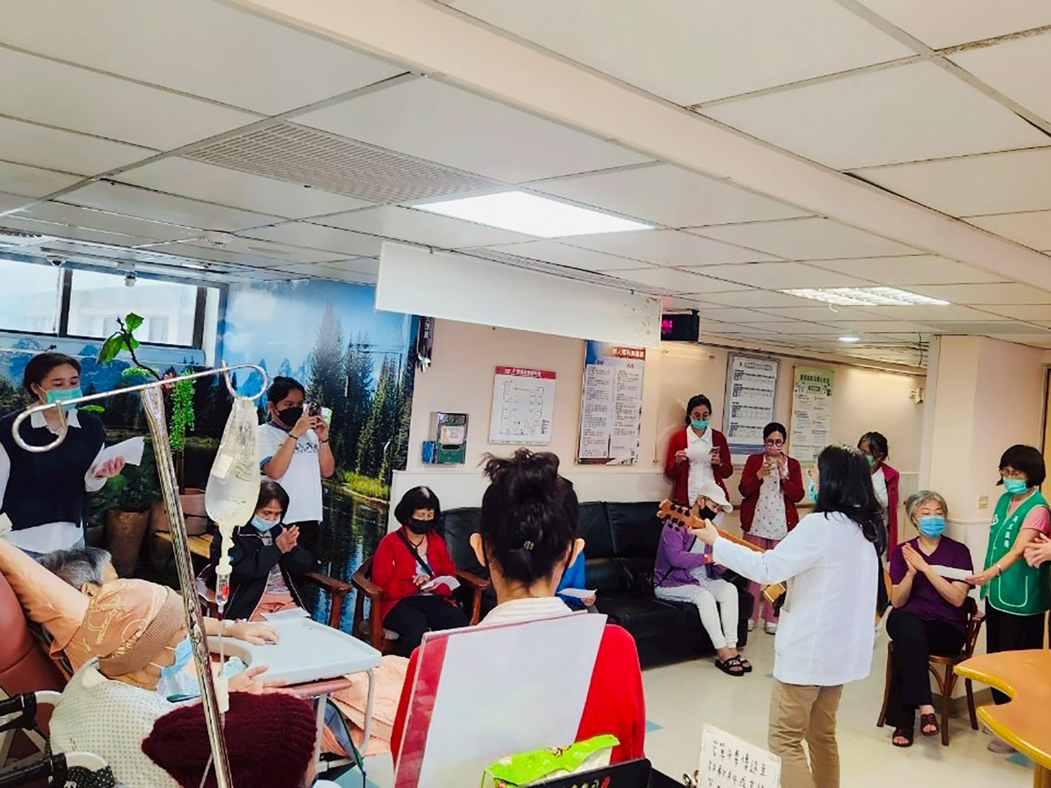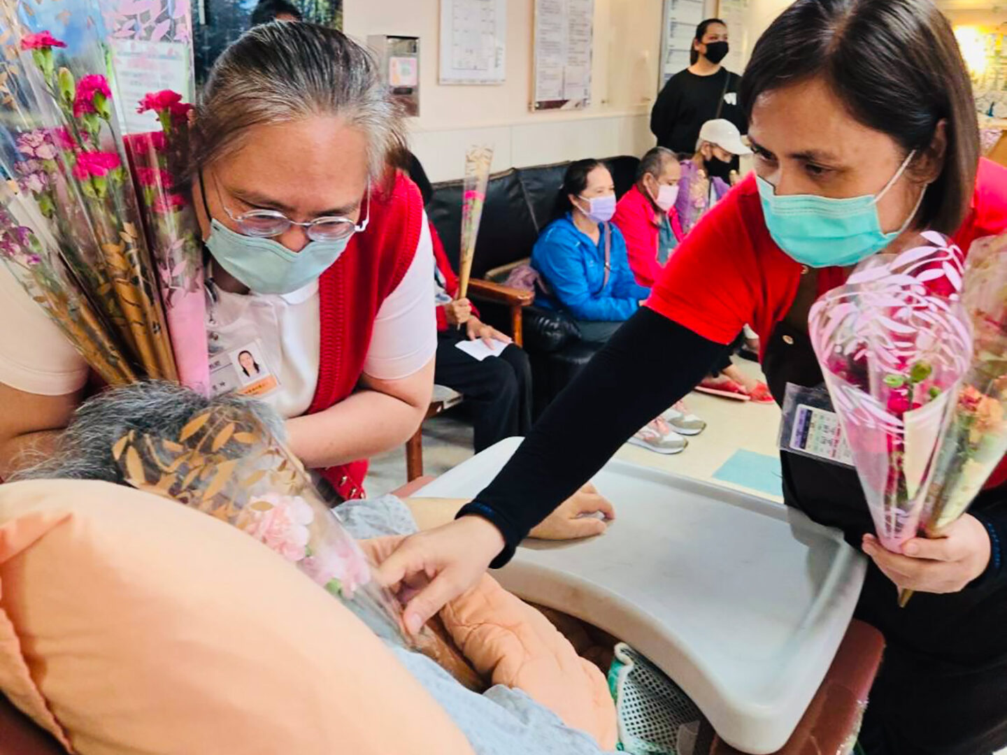 在安寧病房,醫護人員也與病患家屬一同慶祝母親節,獻唱了溫柔動聽的詩歌「耶穌愛你」,也為所有人獻上祝福禱告。護理長田濬榕說,雖然安寧病房的病患與家屬可能無法返家,但團隊努力希望透過活動,讓這裡也能充滿「家」的溫馨氣氛。安寧病房準備的康乃馨以及可口的蛋糕,都是獻給在場所有象徵「母親」角色的家人以及默默付出的照顧者們,部份身體狀況不便走出病房的病患與家屬,護理人員也特別走進病房內傳遞這份充滿愛的祝福與禮物。