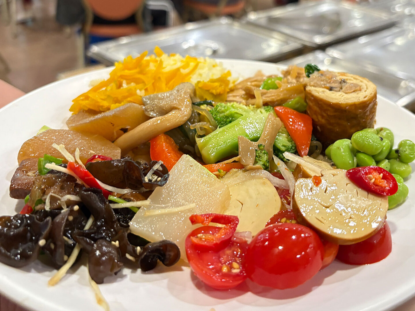 門諾的低碳飲食自助餐,考量了「多樣性」、「當季」、「當地」的蔬菜特色,充分展現了健康與可持續的飲食方式,這些蔬菜富含「植化素」,具有抗氧化作用,門諾也特別注重搭配多種顏色的蔬果以確保營養均衡。在調味方面,營養科選擇使用自然的辛香料,如辣椒、九層塔以及葱、薑、蒜,來替代傳統的調味料,這樣可以更好地體驗食物的原味。另外也將豆製品如豆腐和豆干融入菜餚中,並配合黑色木耳、香菇、白色洋蔥、綠色青菜、紅色紅蘿蔔和番茄等,這些都是在當季選擇的食材,期待能開發出一系列色香味俱全的低碳飲食菜單,讓員工享用之際,也能將這個概念帶回家,守護地球與家人健康。