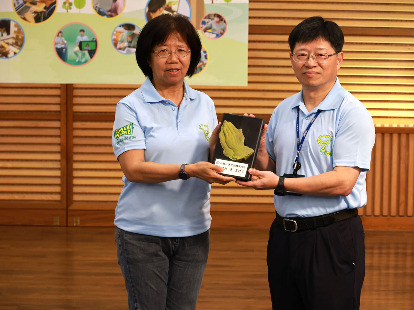 台電花蓮區營業處處長李淑芬(左)、門諾醫療總執行長張文信(右)致贈感謝狀