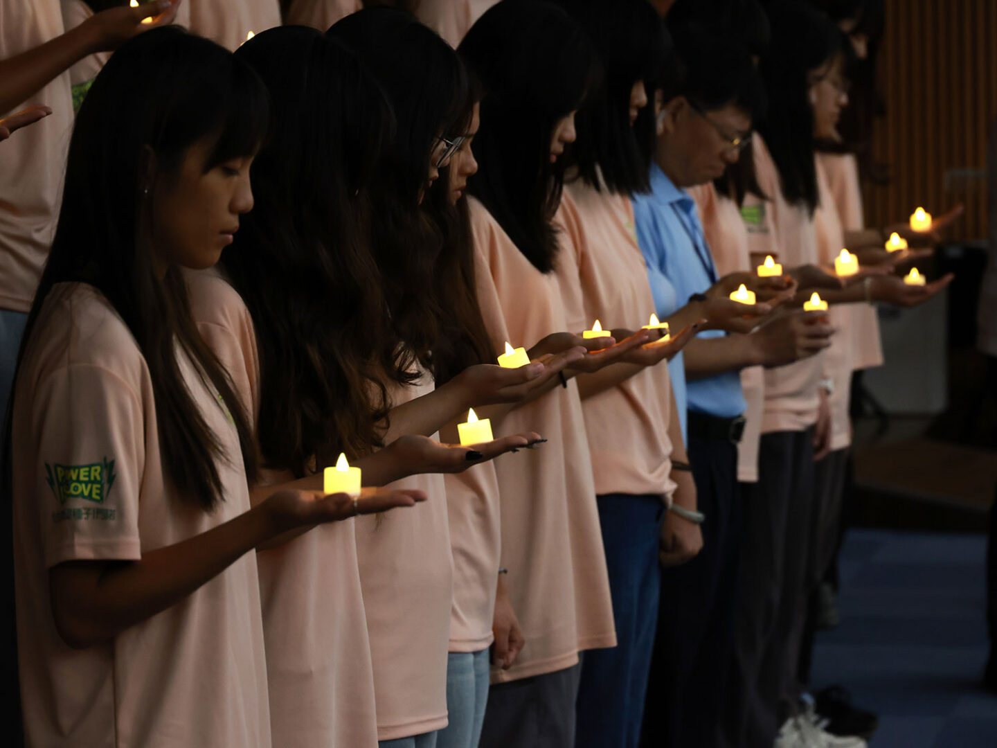 始業式現場,19位希望種子學員手持蠟燭,為近日於風災搶修中不幸受傷的台電同仁獻上祝福。燭光搖曳中,全場靜默禱告,氣氛莊嚴而溫馨,傳遞出跨世代彼此扶持、彼此祝福的力量。望著學員們靜靜點亮燭光、傳遞溫暖,總執行長張文信感動的說:「感謝台電給我們這樣的機會,攜手陪伴下一代成長。也願接下來的每一屆希望種子,依然能走進人群,照亮別人,也照見自己。」