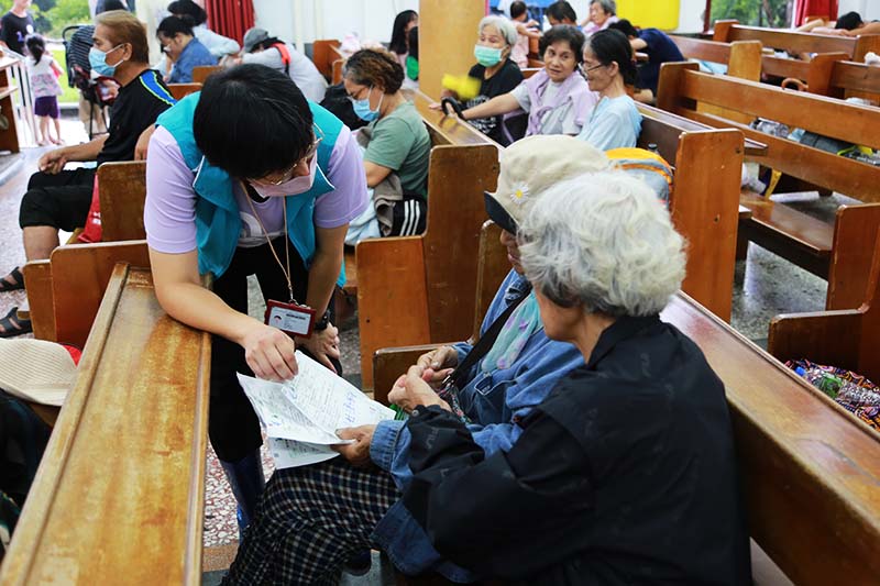 教會外面仍然是風雨交加,現場很多阿公阿嬤也都是倉促離開家園,甚麼都來不及拿,自然也不會有健保卡,但這不會是問題。