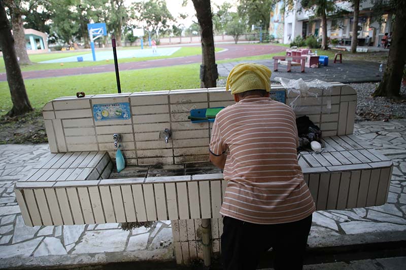 國軍在一樓提供了臨時的洗澡設備,但水資源有限,大家必須輪著洗,建成很樂觀地說,自己反正躺著沒流汗,就給其他需要的人洗就好。以書皓的治療師專業來看,他認為重癱者安置在一樓才是最佳的選擇,畢竟垂直移動就是第一件要解決的難題,收容中心因避難考量把兩位重癱的災民移往二樓,其實會有許多照顧上的難處,但現在狀況特殊,也就尊重收容單位的意見,他表示輔具團隊仍會盡全力提供最全面的輔具服務。