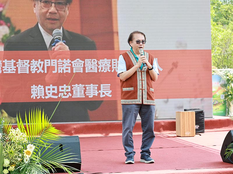 此外,原住民族委員會副主委陳義信也以阿美族語親切問候族人,看見來自光復、萬榮與鳳林的鄉親齊聚一堂,他感受到滿滿的愛與支持,並感謝門諾醫院長年走入原鄉,陪伴族人,期盼這片土地能在祝福中逐步恢復往日樣貌。