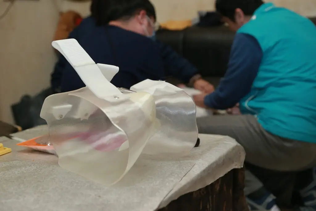 兩個多小時的時間,團隊先從試穿觀察、指導案家穿戴、一直到確認矯具合乎患者的使用,也已經是傍晚了。除了門諾義肢矯具團隊之外,也有許多人協助威如,例如在學校照顧她三年多的特教助理員,以及學校的特教老師,威如的母親都非常感激大家,甚至學校的特教老師還特地專程北上,幫威如關心矯具的調整狀況。